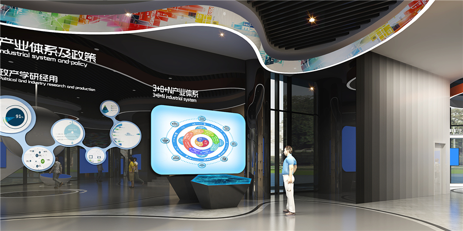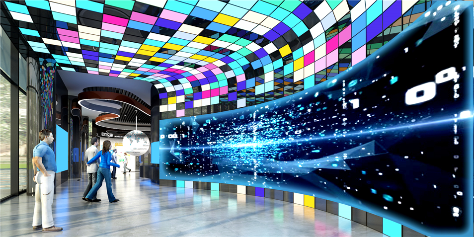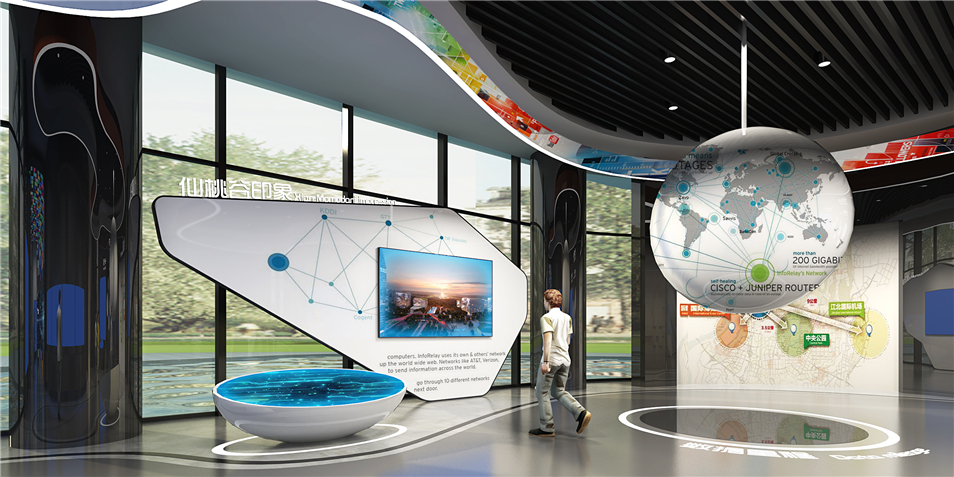 重慶仙桃國(guó)際數(shù)據(jù)谷展示體驗(yàn)中心,展廳主要布局了序廳、仙桃印象、規(guī)劃宏圖、創(chuàng)新平臺(tái)、綜合產(chǎn)品體驗(yàn)區(qū)、幻彩走廊、產(chǎn)業(yè)洽談推進(jìn)區(qū)、影院共八大主題展區(qū),宣傳數(shù)據(jù)谷規(guī)劃理念和成果,是接待來(lái)訪(fǎng)領(lǐng)導(dǎo)、企業(yè)、嘉賓的高科技會(huì)客廳。