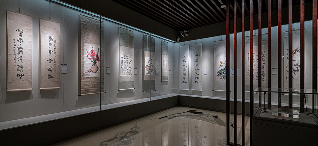 君匋藝術院展廳陳列的主要內(nèi)容是書畫印章。二層展廳設有展櫥及展柜,用于陳列錢君匋先生的書畫印章,還設有錢君匋藝術生涯陳列室。底層展廳用大展板的形式將六開間的展覽大廳分隔成兩間用于陳列巨幅書畫,兩個展廳均鋪設復合地板,裝修新穎,并裝置了微波動態(tài)防盜報警系統(tǒng),以保證日常需求。