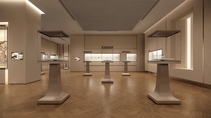 上海博物館東館位于浦東聯洋社區 10 號地塊,金螳螂文化承接館內璽印篆刻、玉器、江南造物及文保展示館陳列展覽項目,展覽面積約 3779 ㎡。