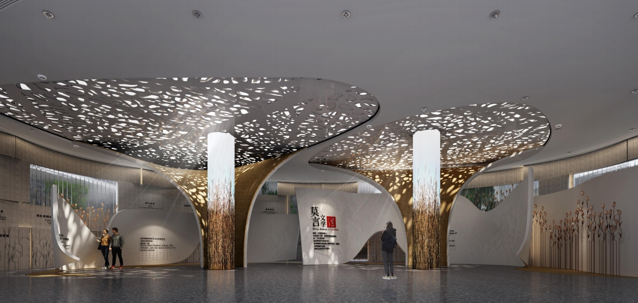 Gold Mantis 《紅高粱》佳作聞名遐邇, 一本《蛙》斬獲茅盾文學獎 與諾貝爾文學獎兩大獎項。 書本所蘊含的智慧等待我們探尋, 作者莫言先生的故事也值得我們了解, 世界級文學殿堂—— 建成后的莫言文學館將指引答案。 01 緣起:直通文學王國的精神堡壘 近年來,隨著莫言獲得了世界文學至高榮譽——諾貝爾文學獎,莫言文學超越了文化的界限,成為一張中國名片,在世界范圍內產生廣泛影響。山東省高密市借力“莫言”效應,著力打造紅高粱文化旅游品牌。 Mo Yan 莫言 首位中國籍諾貝爾文學獎獲得者 本名管謨業,1955年出生于山東省濰坊市高密市,中國作家協會副主席,著有《紅高粱家族》《檀香刑》《蛙》等眾多佳作。 紅高粱小鎮位于高密市臨港經濟區核心區,占地9平方公里,總投資103億元。小鎮以莫言文學和紅高粱文化為核心,植根于莫言的文學故鄉,以莫言舊居、莫言文學館、紅高粱影視城為核心載體,突出展示莫言的文學成就及高密的文化底蘊,促進世界文學交流,打造“一帶一路”的文化交流樣板區。 其中,莫言文學館作為文旅小鎮的核心,用地116畝,展館占地10畝,建筑面積23000平方,總投資3億元。金螳螂文化于近期中標莫言文學館的設計施工項目,將深度解析莫言文學內涵,通過前沿設計與專業施工傾力呈現莫言文學王國的魅力。 02 文學館空間:與時間對話的藝術 對于我們而言,任何一個展覽項目都是一種獨特的使命。它從全面而徹底的構思開始,以嚴格甚至嚴酷的執行結束,從而使創意能夠轉化為真正鼓舞人心的參觀體驗。 展陳設計中,金螳螂文化設計團隊以“我是一個講故事的人”為設計理念,用喚起感官聯覺的創新展陳形式,將莫言的文學內涵轉化為具象的藝術展示。 莫言文學館展陳設計 初步效果圖 前廳內,利用層高優勢,打造明亮通透、大氣磅礴的藝術化空間。正中間的藝術造型以科技手段結合紙張的藝術表現形式,紅高粱藝術裝置作為點綴,以一種有機的設計讓空間融于自然,渾然一體。日光傾瀉帶來無限希望和遐想,就像莫言的文學作品,用文字突破時空形成的經緯限制。 金螳螂文化設計團隊充分解讀建筑設計語言,依據建筑形態合理規劃展陳布局,充分利用中庭中空的建筑特點,依托莫言的文學特性,引入時間與光影的語言,為高密人民豎起新的精神地標,打造輻射全國、乃至世界文學界的人文殿堂。 03 打破常規的藝術設計:自然與本真 圍繞莫言構建的“高密東北鄉”的文學地理概念,用“出走、找尋、回歸、超越”四個階段遞進式構筑“莫言的文學王國”,讓觀眾得以從一個全新的視角和維度認識到莫言文學的價值,沉醉于莫言文學的藝術魅力。 除展覽空間之外,莫言文學館還配備有閱覽室、報告廳、文學研究室、文創空間與辦公室,兼具展示性與功能性。 希望構建人與自然、空間與自然的相互聯系,喚醒心靈最深處的記憶,體驗其背后的精神實質,將設計原則中所體現的自然、和諧、秩序,統一在物理空間內,力求尋找人體尺度與心靈廣度的回歸。