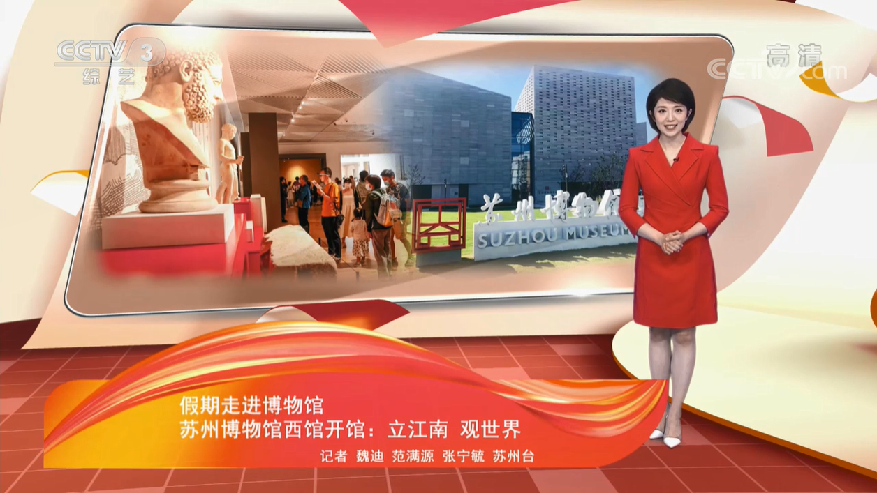 Gold Mantis 10月5日,中央電視臺綜藝頻道CCTV-3《文化十分》節目播出了蘇州博物館西館特別報道。讓我們跟隨央視獨家視角,走進國慶前全新開館的蘇博西館,感受江南文化與國際文明交匯的魅力! 在蘇博西館這座城市新地標里,金螳螂文化帶來“純粹江南 · 蘇州歷史陳列”、“羅馬 城市與帝國”國際合作館開幕展覽與“書畫蘇州——館藏書畫”特展,通過數月的精心設計與施工,呈現被光包裹的詩意空間。 由建筑大師貝聿銘設計建造的蘇州博物館一直是蘇州市的地標性建筑。9月29日,蘇州博物館西館全新開館,西館不僅在建筑風格上呈現出更強烈的當代性和未來感,展陳內容也更國際化。 開館前夕,CCTV-3《文化十分》記者應邀獨家走進全新打造的蘇博西館,探訪首批亮相的珍貴文物和這所現代化的文博建筑。 蘇州博物館西館由德國GMP建筑事務所設計,自2018年3月開始建設,由10棟單體相互連接的建筑群組成,今年國慶前夕,終于開館和公眾見面了。 “純粹江南 · 蘇州歷史陳列”是蘇州地區首個通史陳列,用1200余件/套文物,講述著蘇州萬年文明史、兩千五百年城市史,溯源蘇州文脈傳承和地域文化發展。不僅有吳王夫差劍、吳王余眜劍等重量級文物亮相,還有一批封藏庫房多年的出土文物集中展出。 “技憶蘇州·蘇作工藝館”則用約800余件/套文物,講述從宋元及至當下的蘇作工藝故事。 走進“書畫蘇州——館藏歷代書畫特展”,元代《七君子圖》、明代吳門書畫等珍貴作品也集中亮相。 蘇州市文物局副局長、蘇州博物館館長陳瑞近在采訪中提到,蘇州博物館是比較偏重于藝術類的,做這個西館的時候,面積相對來說比較大一點,48300多平方米,展陳面積有13000多平方米,動了不少腦筋。比如通史館,這是我們最主要打造的,把蘇州整個一萬年的發展史呈現出來。我們以后這個博物館的定位,要為本地的社區即蘇州市民服務的,所以打造成一個博物館學校。 節目還詳細介紹了西館文物布展過程以及藏品庫房功能。新落成的西館文物庫房面積是本館的三倍左右,以往不便存放的大尺寸油畫、版畫、雕塑等文物,如今都可以安放在大型器物庫房。 眼前這些便是漂洋過海而來的大英博物館古羅馬雕塑。正在國際合作館展出的“羅馬 城市與帝國”也是大英博物館該展覽首次在亞洲集中展出。 蘇州市文物局副局長、蘇州博物館館長陳瑞近認為,江南文化最大的特點是多元文化的包容,包容性的一種多元文化才能夠把各個地方文化融合在一起,呈現出自己的區域特色。今年跟大英博物館合作,明年做古巴比倫或者古希臘、古埃及的,把世界上的文明都介紹一遍給大家,讓觀眾不用出蘇州就能自己來探索。 建設蘇博西館的立意就是“立江南,觀世界”,我們要站立在自己的地域特色的區域內,然后放眼世界。建西館最樸素的想法是,能夠讓一個館有兩個區域互為補充,更好地服務觀眾,也更好地發揮我們的宗旨和使命。