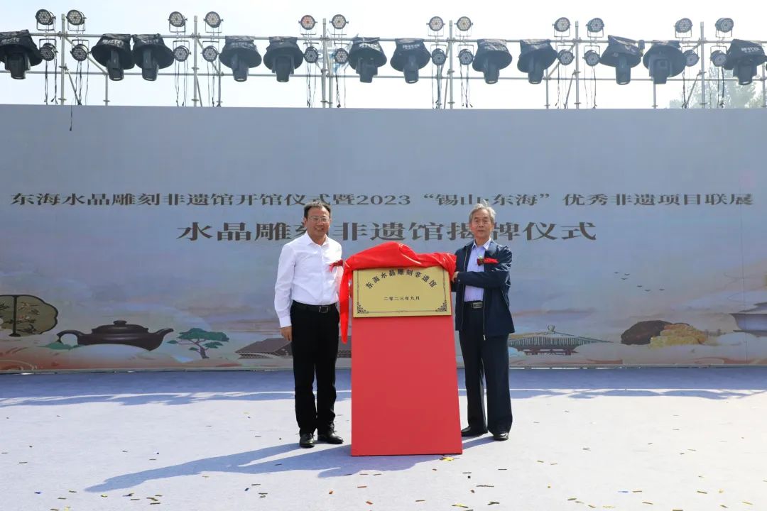 9月20日,東海水晶雕刻非遺館開館儀式暨2023“錫山·東海”優(yōu)秀非遺項(xiàng)目聯(lián)展舉行。國家文旅部原副部長、直屬機(jī)關(guān)黨委書記常克仁,連云港市副市長、東海縣委書記宋波共同為東海水晶雕刻非遺館揭牌。