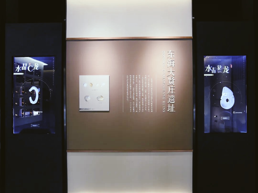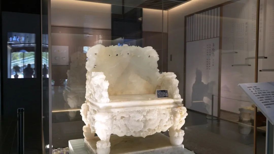 進(jìn)入序廳,中心位置是展館之最“仿古水晶九龍椅”,之后是東海水晶雕刻傳承人譜系、水晶詩詞多媒體、水晶的形成與郯廬地震遺址等內(nèi)容展示。