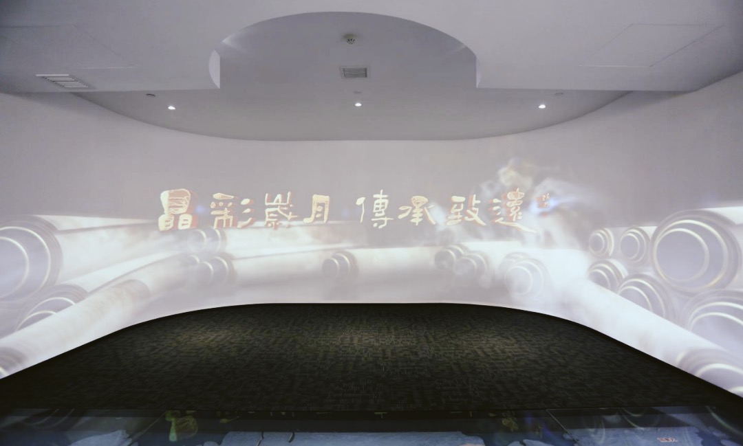 晶彩歲月,傳承致遠(yuǎn)。U型投影幕與沙盤燈控相結(jié)合,展示中國古代時(shí)期各地出土的水晶器物和玉石雕刻的技藝的傳承。