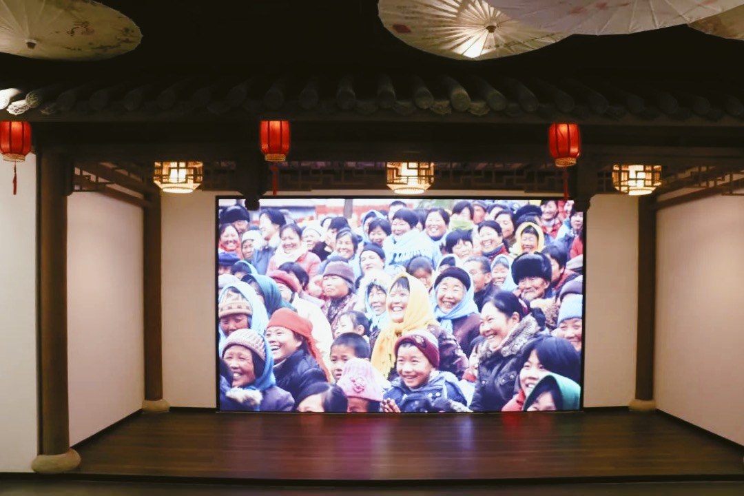 △ 透過花窗,“傳承·保護(hù)”四個(gè)字映入眼簾,展現(xiàn)著非遺精神